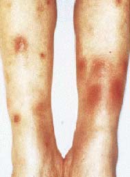 ÇǺÎÀÇ º´º¯Àº ¿©·¯ °¡Áö ÇüÅ·Π³ªÅ¸³¯ ¼ö Àִµ¥ ÇǺΰ¡ »¡°²°Ô º¯ÇÏ¸é¼ µüµüÇÏ°í ¾ÆÇ °áÀýÀÌ ¸¸Á®Áö´Â ¡®°áÀý¼º È«¹Ý¡¯ÀÌ Àß »ý±é´Ï´Ù. À̰ÍÀº ÁÖ·Î ´Ù¸®¿¡ »ý±â´Â ¹ÝÁ¡À¸·Î, Ãʱ⿡ »ý±æ ¶§´Â ºÓÀ¸¸ç À¶±âµÇ¾î ¸Å¿ì ¾ÆÇÁ°í, ¼öÀÏÀÌ Áö³ª¸é¼ Á¡Â÷ »öÀÌ ¿¬ÇØÁö¸é¼ ÅëÁõµµ »ç¶óÁö³ª, ÀÚÁÖ Àç¹ßÇÕ´Ï´Ù. ±× ¿Ü¿¡ ¿©µå¸§ ºñ½ÁÇÑ ¹ßÁø, ¸ð³¶¿°, Ç÷°ü¿°ÀÌ µ¿¹ÝµÈ ±¸Áø¼º ¹ßÁø µîÀÌ ³ªÅ¸³¯ ¼ö ÀÖ½À´Ï´Ù.